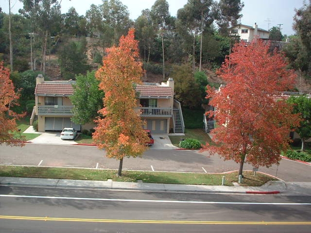 Colorful Amber Trees line Reservoir Drive as seen in these next two pictures taken from the Living Room Balcony during the Fall months. This adds as sense of seasons to the community not usually found in the semi tropical climate of San Diego.