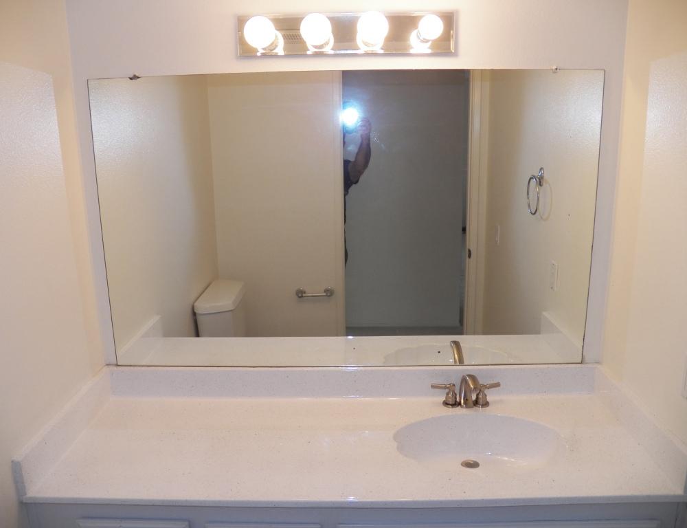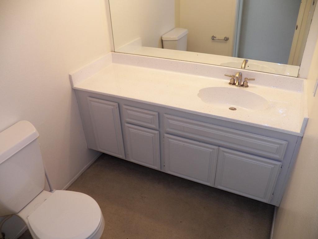 The Half Bath is located on the entrance level next to Bedroom 4. Typically the person in Bedroom 4 uses this bathroom exclusively. The Half Bath features a large mirror and counter top. The person in Bedroom 4 uses the shower in the Shared Bathroom and returns to their Half Bathroom to finish getting ready.